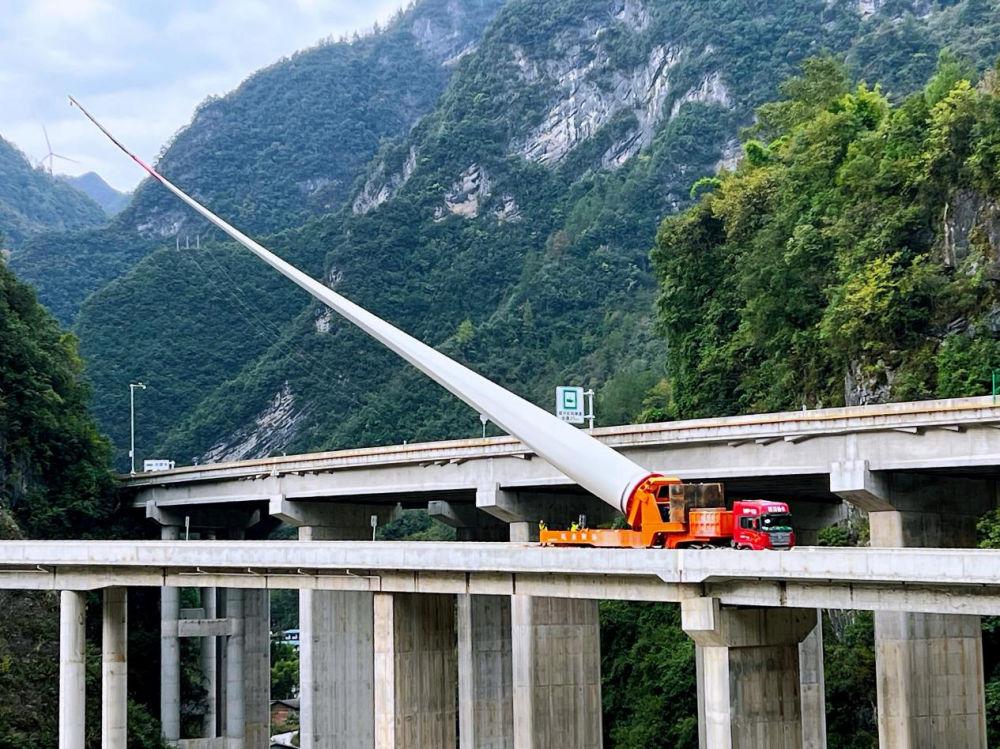 2021年11月,叶片扬举车执行重庆市石柱石家风电项目运输。(优发国际资料图片)