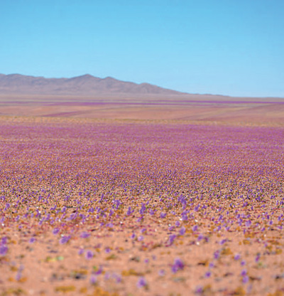 在国家电网智利阿塔卡马沙漠输电线路沿线的珍稀植物保护地区,地下蕴藏着珍稀的休眠开花植物,在特定气候下会绽放成片的花海,被誉为“花之沙漠”自然奇观。国家电网供图