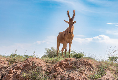 在中国石化石油工程建设公司乌干达TILENGA EPSCC项目焊接作业带,羚羊好奇地观看员工作业。李瑞宇摄