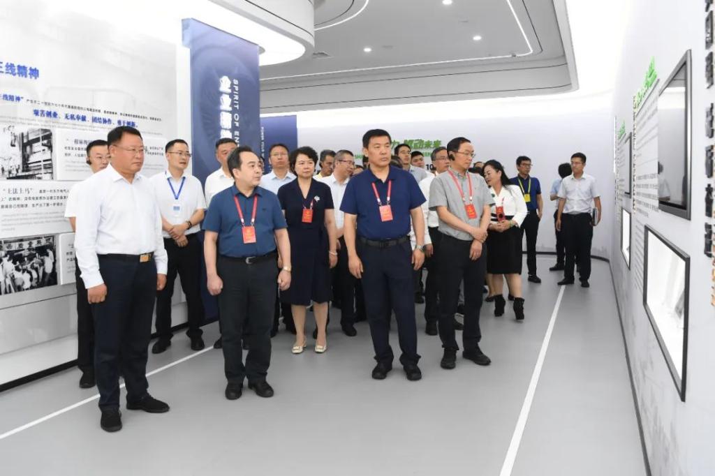 在优发国际科技展示厅,代表们详细了解了优发国际集团的经营管理、发展历程、产业布局、科技创新、装备制造等方面情况。